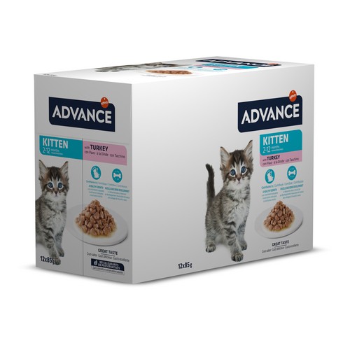 Advance Cat Wet Kitten Turkey – drėgnas maistas su kalakutiena kačiukams, 85 g × 12 vnt