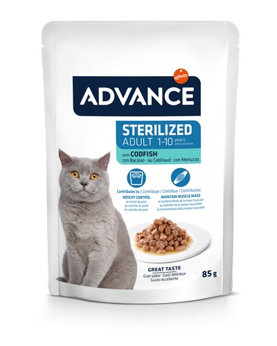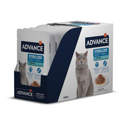 Advance Cat Wet Sterilized Codfish – drėgnas maistas su menke sterilizuotoms katėms, 85 g × 12 vnt