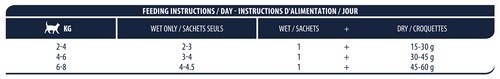 ŠĖRIMO INSTRUKCIJA: Šėrimo norma yra nurodyta ant pakuotės, reiktų atsižvelgti į kūno svorį ir aktyvumą. Laikyti vėsioje, sausoje vietoje. Patiekti kambario temperatūros.Atidarius laikyti šaldytuve iki 2 parų. Visada turi būti švaraus vandens.