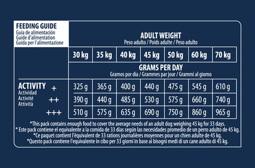 Sudėtis: Vištiena 20%, kviečių grūdai, 0,17, dehidratuoti paukštienos baltymai, ryžiai 10%, paukštienos riebalai, kukurūzų miltai, dehidratuoti žirniai 4%, dehidratuoti kiaulienos baltymai, hidrolizuoti gyvūniniai baltymai, visos kukurūzų dalys, kukurūzų baltymai, runkelių griežiniai 2%, žirnių ląsteliena, kviečių pamiltės, cikorijų inulinas 0,8%, mineralai, kiaulienos plazmos baltymai 0,4%.