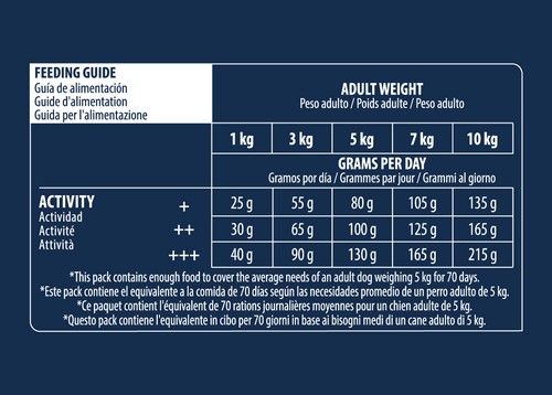 Sudėtis: Vištiena 20%, dehidratuoti paukštienos baltymai, kviečių grūdai 10%, ryžiai 10%, visos kukurūzų dalys, paukštienos riebalai, dehidratuoti žirniai 4%, kukurūzų miltai, dehidratuotos kiaulienos baltymai, kukurūzų baltymai, hidrolizuoti gyvūniniai baltymai, runkelių griežiniai 2%, žirnių ląsteliena, kviečių pamiltės, cikorijų inulinas 0,8%, mineralai, kiaulienos plazmos baltymai 0,4%.