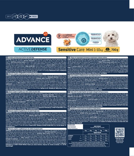Advance Mini Sensitive su lašiša ir ryžiais – sausas maistas jautriems mažų veislių šunims 0.7 kg