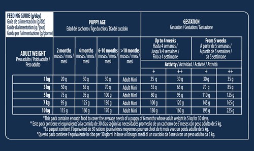 Visavertis ir subalansuotas pašaras, specialiai sukurtas šuniukams (nuo 2 iki 10 ménesiu amžiaus, iki 10 kg suaugusio svorio) ir besilaukiančioms kalėms.