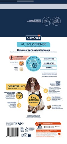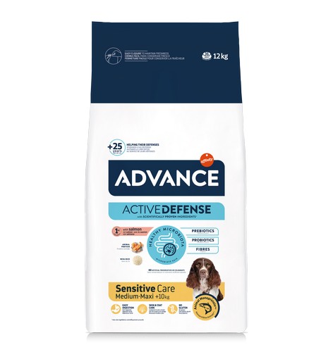 Advance Sensitive Medium/Maxi su lašiša ir ryžiais – sausas maistas jautriems vidutinių ir didelių veislių šunims 12 kg