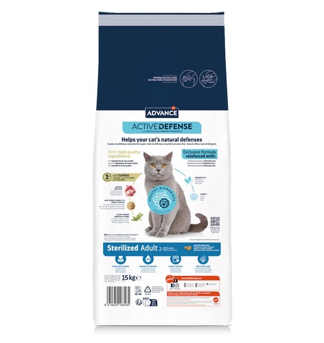 Advance Sterilized Adult su kalakutiena ir miežiais – sausas maistas sterilizuotoms suaugusioms katėms 15 kg