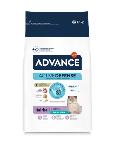 Advance Sterilized Hairball – sausas maistas sterilizuotoms katėms nuo plaukų kamuoliukų 1.5 kg