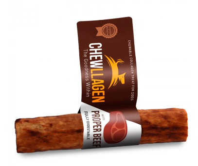 „Chewllagen” skanėstas gaminamas iš kolageno, gaunamo iš žole šeriamų Pietų Amerikos galvijų odos. Kolageno baltymai hidrolizuojami ir kaitinant suskaidomi į mažesnes ir lengviau virškinamas molekules. Tuomet jis formuojamas ir kepamas, o po to mirkomas tikroje jautienoje, todėl tampa dar skanesnis. Kolagenas yra gausiausias organizmo baltymas, atliekantis daug svarbių funkcijų, įskaitant kaulų, sausgyslių, raiščių, odos ir kailio augimą ir atstatymą. Gyvūnams senstant kolageno gaminasi vis mažiau ir jis tampa vis prastesnės kokybės, todėl papildomi šio baltymo šaltiniai yra puikus būdas palaikyti puikią jų būklę.