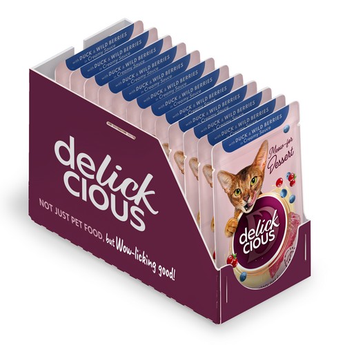 Delickcious™ „Dribsniai su antiena ir miško uogomis kreminiame padaže“Konservuotas maistas suaugusioms katėms, 0,08 kg