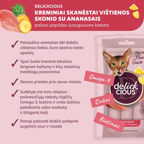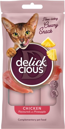 Delickcious™ kreminiai skanėstai katėms – vištiena su ananasais (4 × 15 g, 60 g)