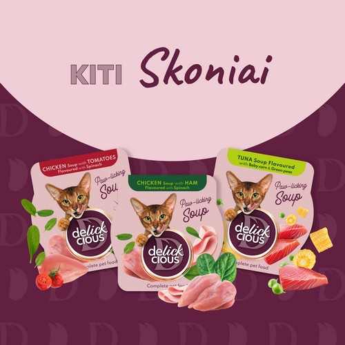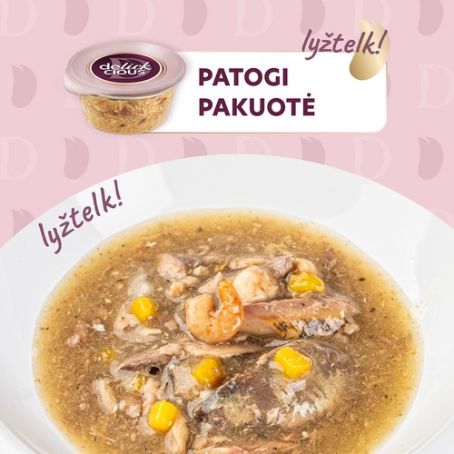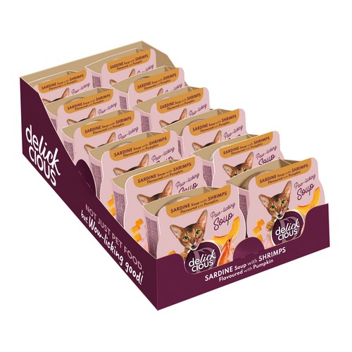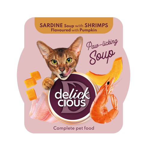 Delickcious™ skystas skanėstas katėms – sriuba su sardinėmis, krevetėmis ir moliūgu