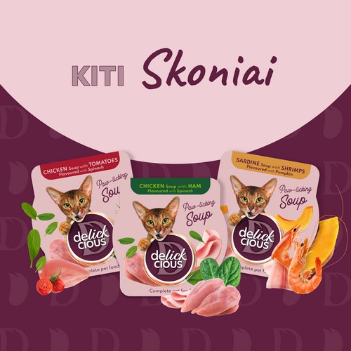 Delickcious™ skystas skanėstas katėms – vištienos sriuba su pomidorais ir špinatais