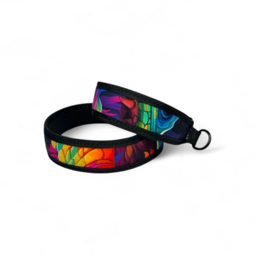 - Minkštas, medžiaginis antkaklis su ryškiu (galite įrašyti gėlių, marmuro ar mandalos) raštu – puikiai tinka kasdieniam nešiojimui, fotosesijoms ir pasivaikščiojimams.