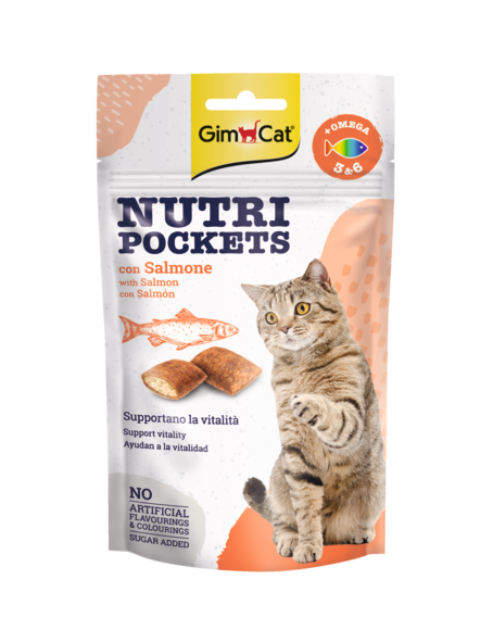 GimCat Nutri Pockets with Salmon & Omega 3&6 skanėstai katėms su Lašiša, Omega 3 ir 6 riebalų rūgštimis 60g