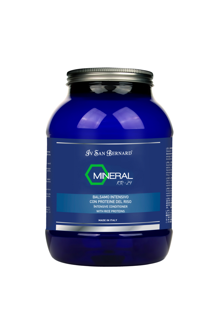Iv San Bernard Mineral H KR-24 – profesionalus kondicionierius šunų ir kačių kailiui, sukurtas intensyviam drėkinimui, minkštinimui ir lengvam iššukavimui. Priemonė praturtinta ryžių proteinais, kurie stiprina kailio struktūrą, suteikia šilkinį švelnumą ir natūralų blizgesį, neapsunkindami plauko.