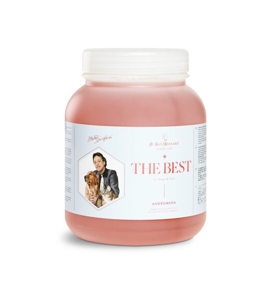 Iv San Bernard THE BEST Andromeda – profesionalus atkuriamasis šampūnas, sukurtas šunims ir katėms, kurių kailis yra pažeistas, nusilpęs ar praradęs gyvybingumą, o oda – jautri ir reikalaujanti ypatingos priežiūros. Priemonė praturtinta erškėtuogių ekstraktu, kuris pasižymi regeneruojančiomis ir maitinančiomis savybėmis, padedančiomis atkurti kailio struktūrą bei sustiprinti natūralų odos balansą.