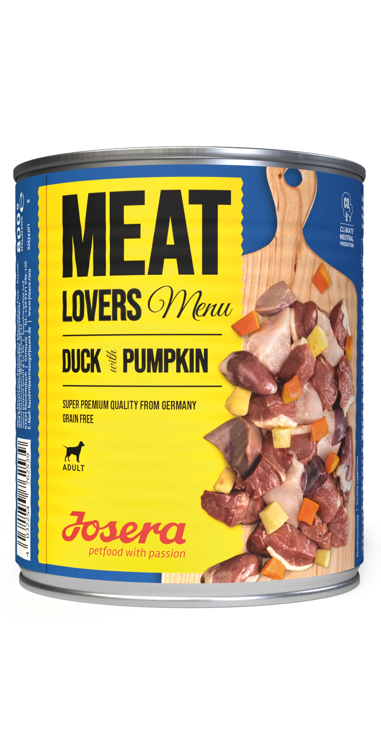 Josera Meat Lovers Menu Duck with Pumpkin konservuotas pašaras šunims su antiena ir moliūgais