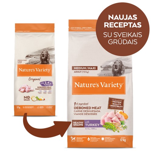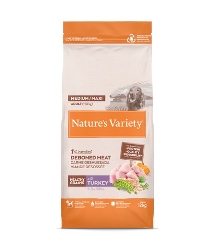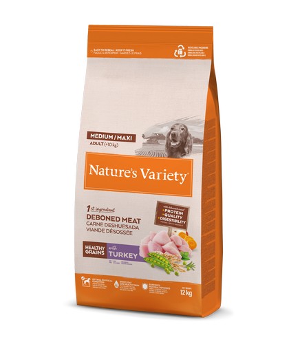 Nature’s Variety Healthy Grain Adult Medium/Maxi su kalakutiena – sausas maistas vidutinių ir didelių veislių šunims, 12 kg