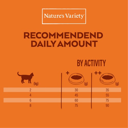 Analitinės sudedamosios dalys: žali baltymai 38%, žali riebalai 14%, žalia ląsteliena 4%, žali pelenai 8,5%, Ω3 0,4%, Ω6 2%. Metabolizuojama energija 3795 kcal/kg.