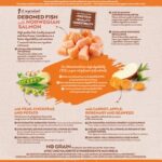 Sudėtis: Iškaulinta norvegiška lašiša* (30%), džiovinti žirniai* (12%), džiovinti tunų baltymai (11%), žirnių krakmolas*, bulvių krakmolas, džiovinti avinžirniai* (5%), džiovinti lašišos baltymai (5%), džiovintos bulvės (4%), paukštienos riebalai* (4%), žirnių baltymai*, hidrolizuoti gyvūninės kilmės baltymai (paukštiena, kiauliena, žuvis) (3%), mineralai, džiovintos morkos* (0.5% atitinka 4% šviežių morkų), džiovinti obuoliai* (0.3% atitinka 2% šviežių obuolių), džiovinti jūros (rudadumbliai)* (0.01%), džiovinti rozmarinai* (0.01%). *Natūralūs ingredientai.
