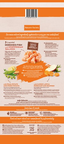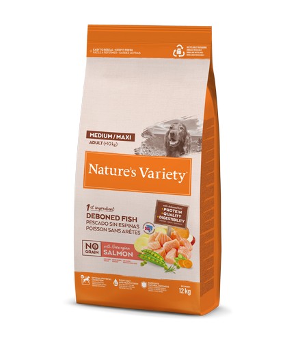 Nature’s Variety No Grain Adult Medium/Maxi su lašiša – sausas maistas vidutinių ir didelių veislių šunims, 12 kg