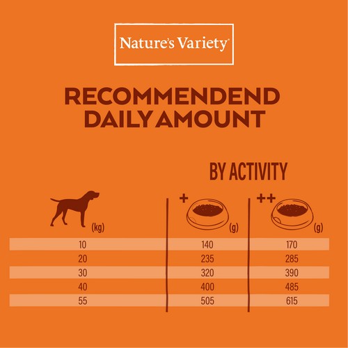 Sudėtis: Iškaulinta vištiena* (16%), džiovinti vištienos baltymai (15%), džiovinti žirniai* (15%), džiovinti kalakutienos baltymai (13%), džiovintos bulvės* (11%), paukštienos riebalai* (7%), hidrolizuoti gyvūniniai baltymai (paukštiena,kiauliena, žuvis) (4%), saldžios bulvės* (4%), žirnių krakmolas*, runkelių minkštimas*, mineralai, džiovintos morkos* (0.5% atitinka 4% šviežių morkų), džiovinti obuoliai* (0.3% atitinka 2% šviežių obuolių), džiovinti jūros dumbliai (rudadumbliai)* (0.01%), džiovinti rozmarinai* (0.01%). *Natūralūs ingredientai.