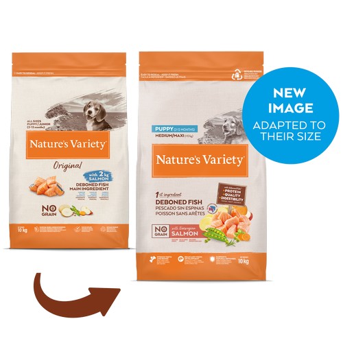 Nature’s Variety No Grain Puppy Medium/Maxi su lašiša – sausas maistas šuniukams, 10 kg