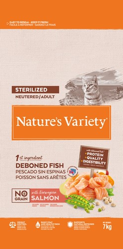 Nature’s Variety No Grain Sterilized Cat su lašiša – sausas maistas sterilizuotoms katėms, 7 kg