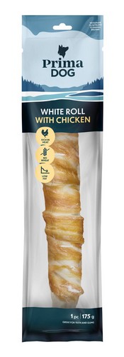 🐶 PrimaDog baltas odos suktinis su vištiena 38 cm, 1 vnt-175 g