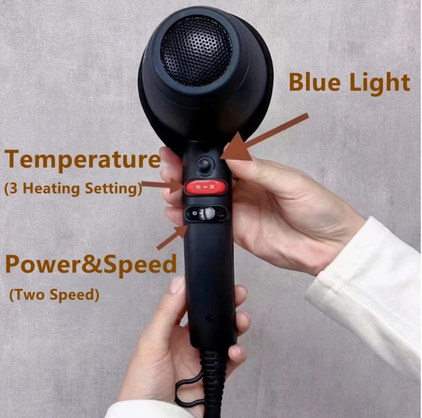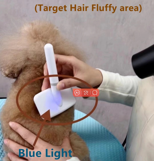 ✔ Mėlyna LED šviesa – leidžia geriau matyti kailį ir odos būklę džiovinimo metu.